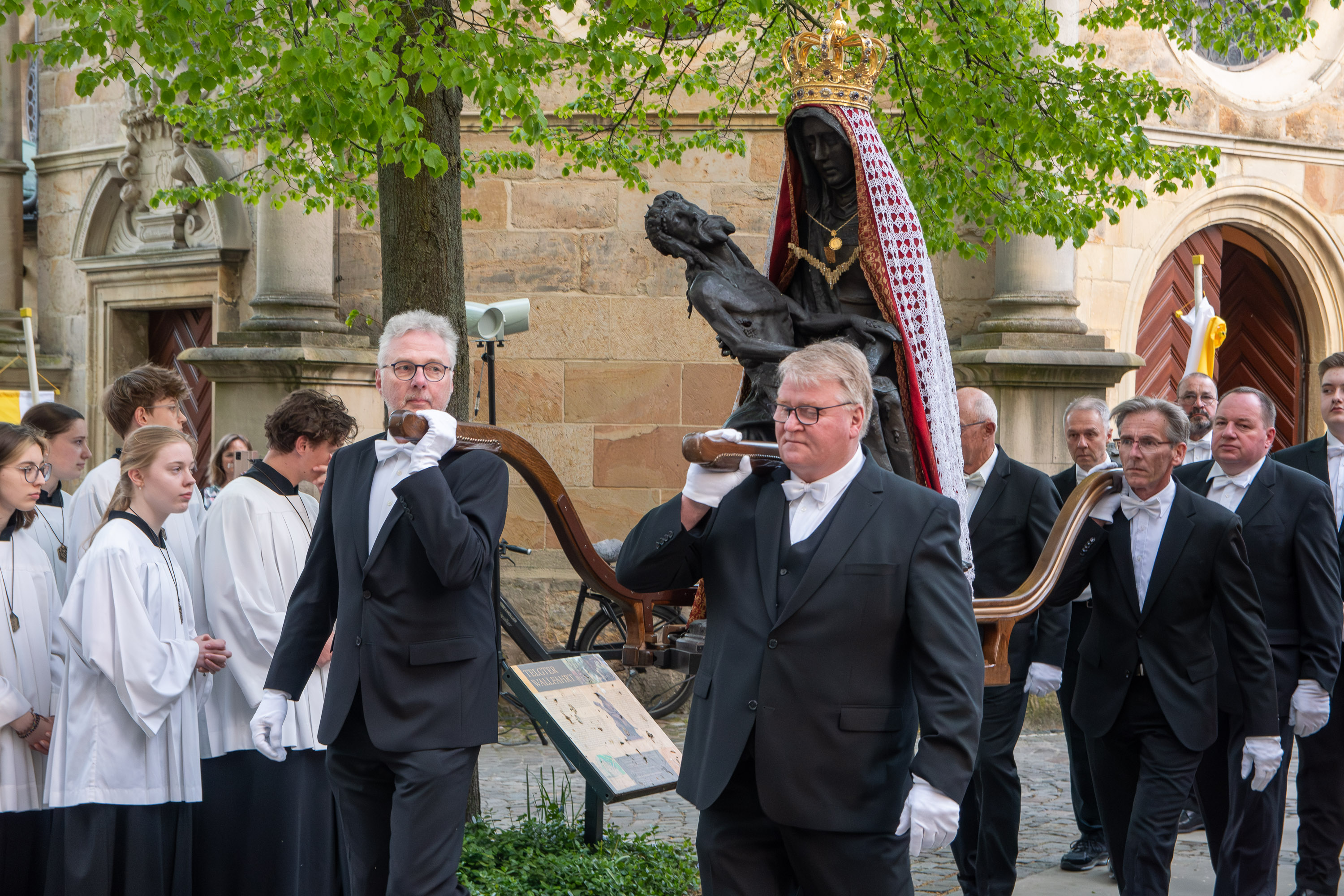 Im Anschluss an den Gottesdienst zog die Gemeinde gemeinsam mit dem Gnadenbild der Schmerzhaften Muttergottes in einer feierlichen Lichterprozession durch die Altstadt von Telgte. Betend und singend begleiteten viele Menschen diesen besonderen Weg und brachten ihre persönlichen Anliegen, Sorgen, Hoffnungen und ihren Dank mit.