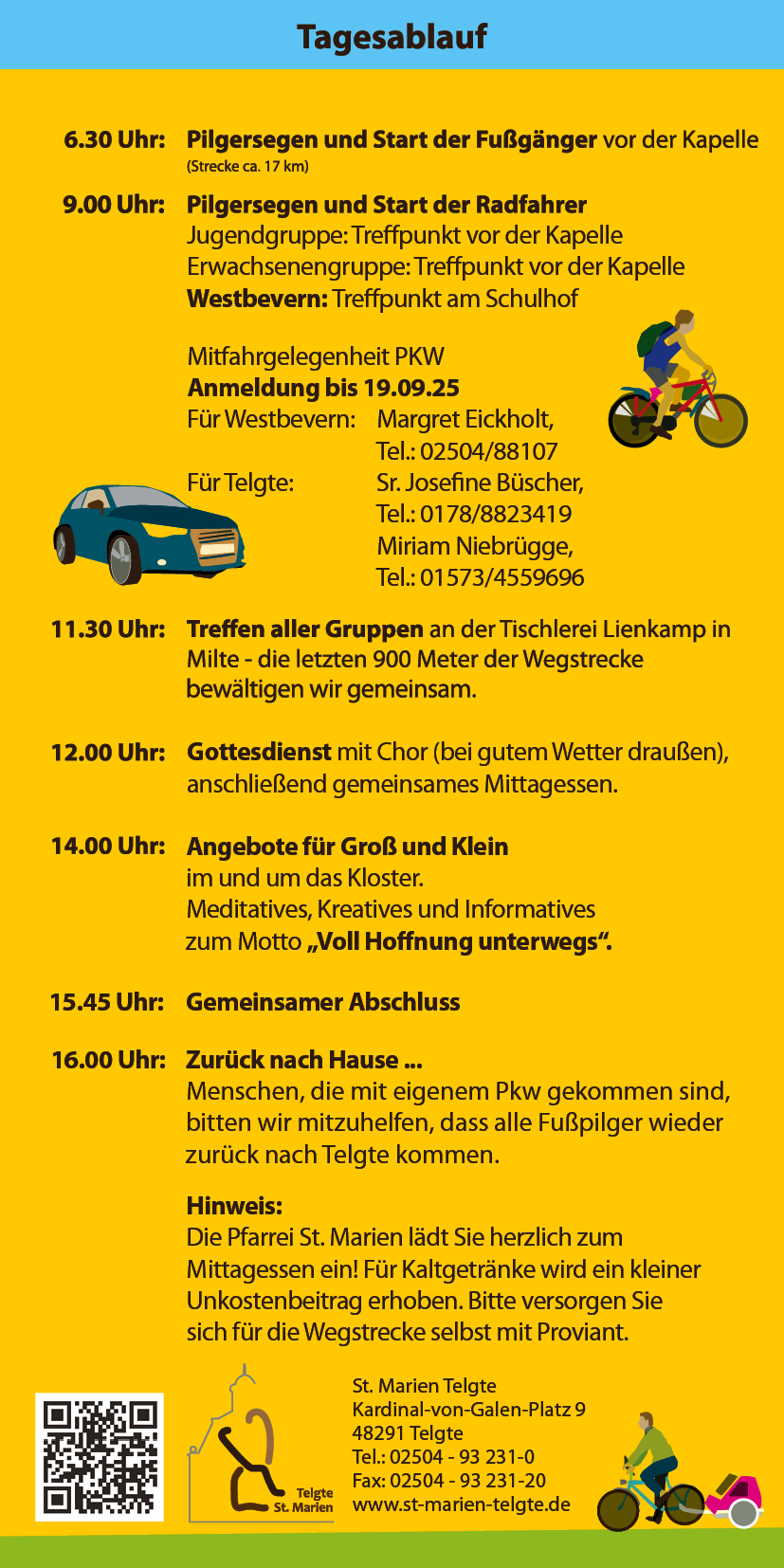 - 6.30 Uhr: Pilgersegen und Start der Fußgruppe Gnadenkapelle Telgte (ca. 17 km)